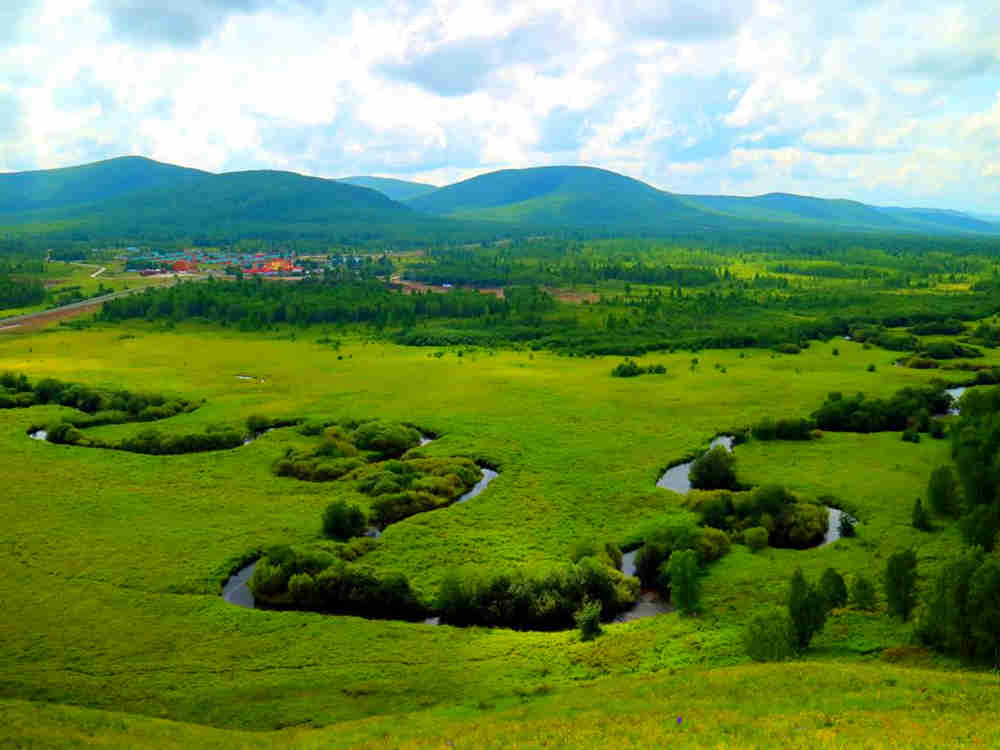 6日大草原 大濕地 白樺林 邊防公路 烏蘭山 中俄界河 太極圖 月牙泡 老鷹嘴 百年老屋 大興安嶺 敖魯古雅馴鹿 油菜花基地 篝火晚會(huì) 體驗(yàn)蒙古和俄羅斯風(fēng)情
